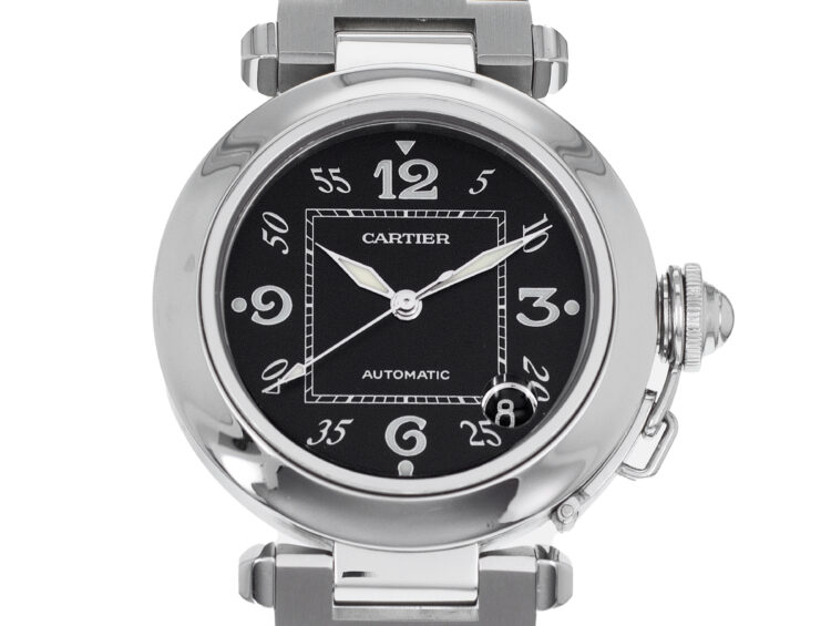 Un des éléments les plus distinctifs de la Pasha est son cadran à chiffres arabes placés autour d’un carré, signe distinctif du modèle. Il est à la fois lisible et élégant. Le boîtier est souvent équipé d’une couronne surmontée d’une pierre précieuse, donnant à la montre un côté résolument chic.